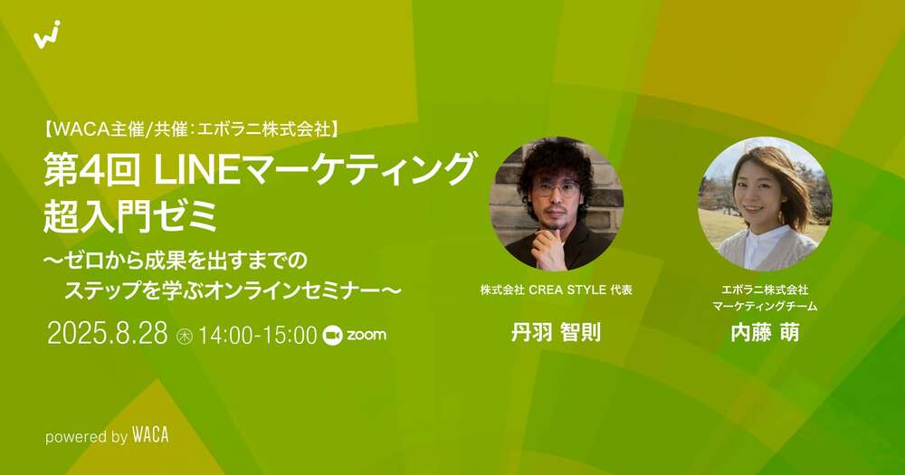 著書『PDCAを回して結果を出す! LINE公式アカウント集客・運用マニュアル』の丹羽智則氏と、ミニアプリ領域を牽引するエボラニのマーケティング担当者が、運用設計から友だち獲得、配信最適化、ミニアプリ活用、ROI算出などさまざまなLINEマーケティングに関する情報を各回ごとにテーマを決めてお届けします。