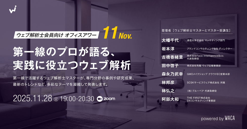 「ウェブ解析士」とは、ウェブマーケティングの知識・スキルを習得するための基盤となる「ウェブ解析」について「体系的に学べる環境」「スキルの評価基準」を設け、必要な能力や知識を身に着けられる資格です。 「ウェブ解析士」の認定機関であるウェブ解析士協会は、スキルアップの機会として各種セミナーを企画・開催しています。 【開催スタイル、キャンセル・返金など】 各回ごとに主催、開催スタイルが異なり...